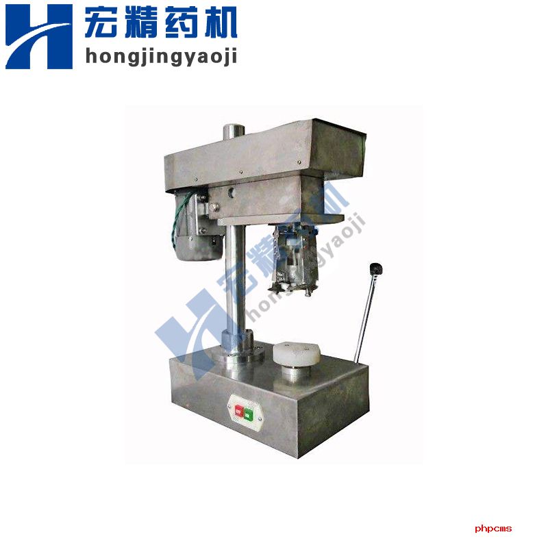 1、把灌好液(yè)體並裝上(shàng)蓋子的瓶子放到下托盤(pán)上,靠在V型支塊(kuài)上,一手扶(fú)住瓶子,另一手將手柄朝後往(wǎng)下拉緊,這時托盤托著瓶子向上(shàng)抬起,直到瓶(píng)蓋與軋蓋頭壓緊。